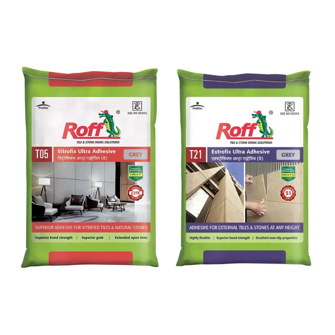 Roff Extrofix Ultra are the two preferred products for stone fixing. These polymer modified products are phenomenal to get ultra finish on the surface.